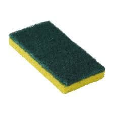 - Absorbent cellulose sponge on one side, medium-duty nylon scrub pad on the other.